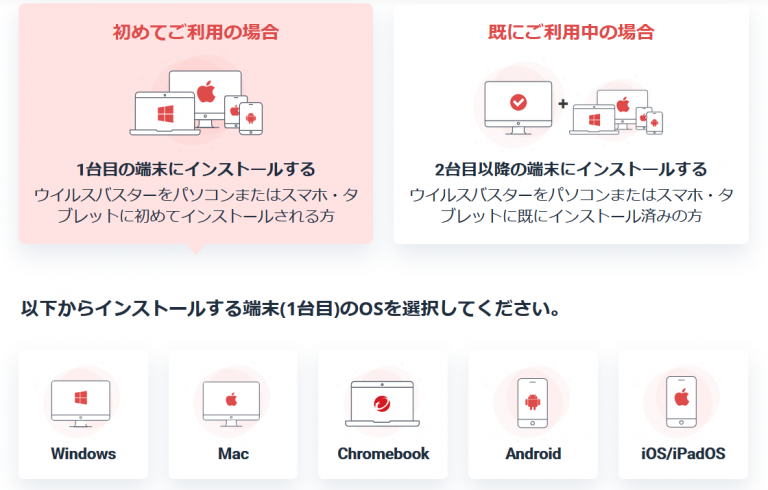 - ウィルスバスター公式サイトからダウンロード: ウィルスバスターの公式サイトにアクセスし、「ウイルスバスタークラウド」のダウンロードページからプログラムを取得します。